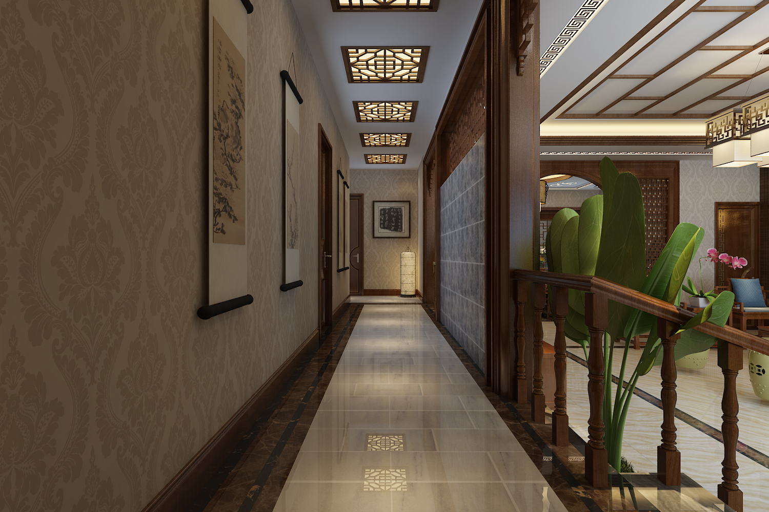 中式風(fēng)格追求的是一種修身養(yǎng)性的生活境界,中國(guó)傳統(tǒng)室內(nèi)裝飾藝術(shù)的特點(diǎn)是總體布局對(duì)稱均衡,端正穩(wěn)健,而在裝飾細(xì)節(jié)上崇尚自然情趣,花鳥(niǎo)、魚(yú)蟲(chóng)等精雕細(xì)琢,富于變化,充分體現(xiàn)出中國(guó)傳統(tǒng)美學(xué)精神。